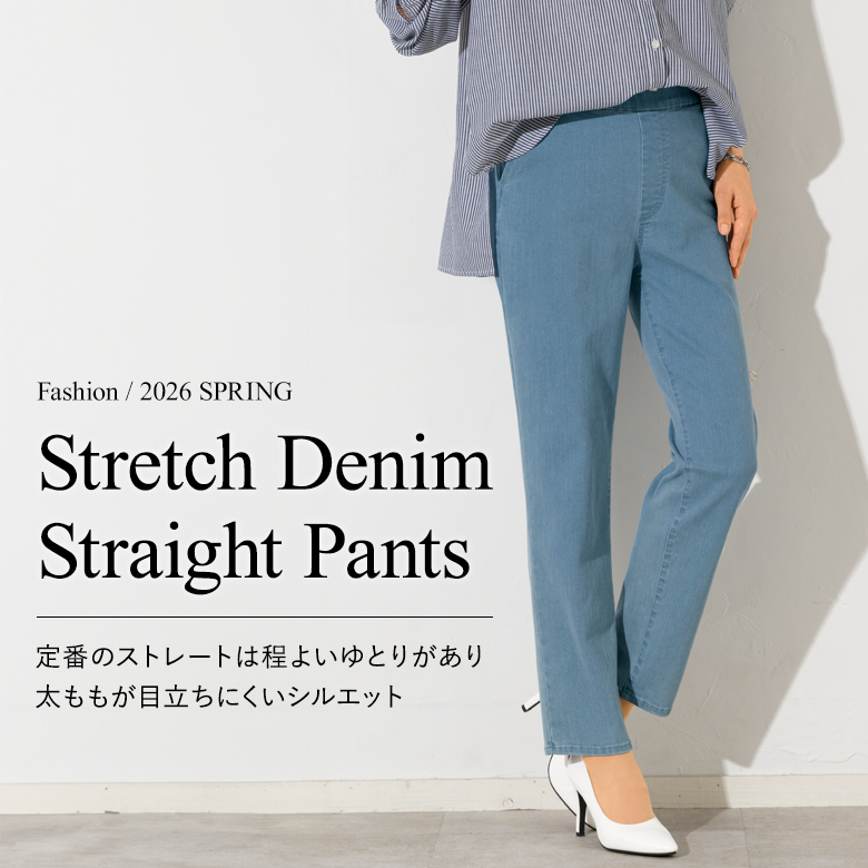 ストレッチデニムストレートパンツ