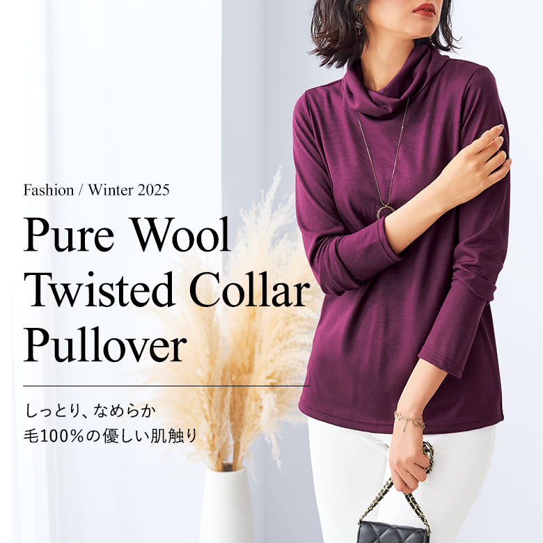 毛100%ねじり衿プルオーバー