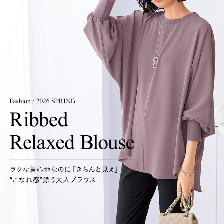 リブ付ゆったりブラウス