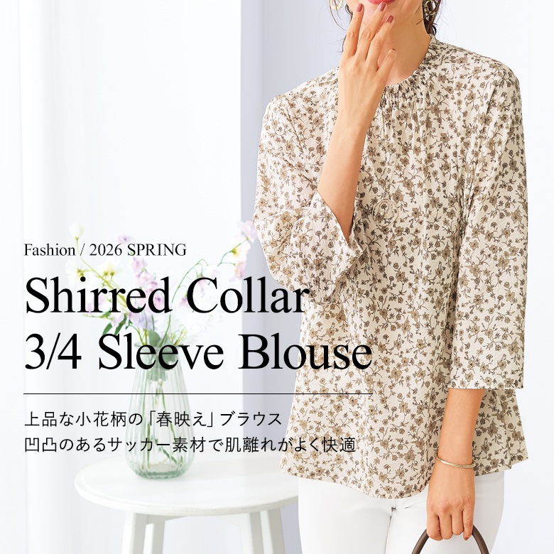 衿シャーリング七分袖ブラウス